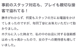 ということで、この間遊びに来てくれたおにいさんからとってもうれしい口コミを書いて貰えたのでお礼カキカキします💌
