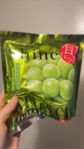 今日はコンビニに売ってる冷凍シャインマスカット食べたよ。