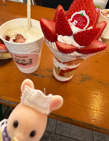 いちごの甘い香りがずっとしてて最高すぎるし、なにより色んなスイーツ屋さんが出店してていろんないちごスイーツが楽しめて最高🍓 あと、いちご単体で販売してるお店もあるからいちごの食べ比べしてみるのとかもおすすめ!
