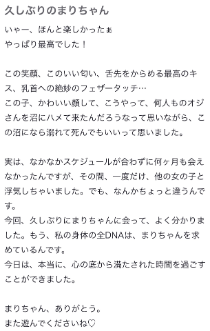 ということで⁉️こんかいもトキメキたのしい時間を過ごしてくれた仲良しさんからの嬉しい口コミが届きましたのでお礼の日記です💌 おまたせしました!
