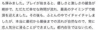 たくさん嬉しいこと書いてくれてる〜いっぱいいちゃいちゃできて楽しかった♡いつも反応がかわいいからつい責めすぎちゃう🥹