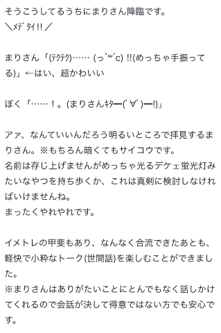 それに前まで、素面じゃ口コミかけない!お酒飲まないとかけない‼️みたいなこと言ってたり、直接かわいいってあんまり伝えられてない‼️みたいなことおしえてくれてたけど、会えた回数が増えていくにつれて 口コミの題名と10行分まで思いつきました!って教えてくれたり、直接あってる時にかわいいって沢山褒めてくれるようになったり、SA!!!くんがパワーアップしてる‼️🆙ってちゃんと気付いてるよ😽 いつまでもちくびとまりちゃんにはよわよわでいて欲しい気持ちもあるけどね⸝⸝- ̫ -⸝⸝