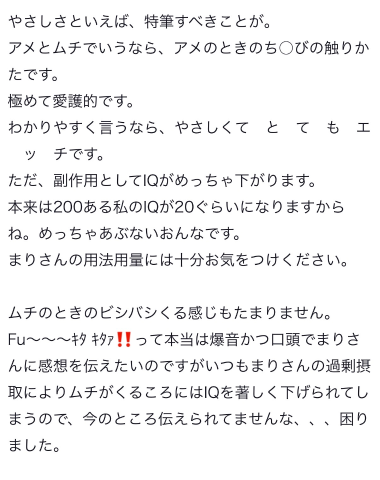 まりさん基本的におにいさんたちのこと、全身やさしくさわさわして、高めて高めて〜ってしてからちくびさわるのが好きなんだけど、そのことかな❓たしかにSA!!!くん、いつもシャキ!としてるのに、ちくびやさしくさわるとホニャホニャホニャ🍼👶ってなっちゃうよねたしかにね、まりちゃんはあぶないおんななのかもしれない⚠️SA!!!くんは次回、IQの低下に耐えられるのか❓乞うご期待ですねぇ( ˆОˆ )