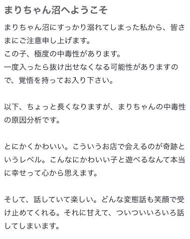 たしろ1203く〜ん‼️この間もとっても楽しい時間を一緒に過ごしてくれて、おうちに帰ったあとも思い出して口コミ書いてくれてありがとう🤩いつもたしろっちがまりちゃんに沼ってくれてるの伝わってきてうれしい気持ちになってるよ😽