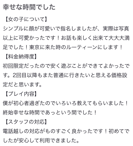 ということで(⁉️)この間遊びに来てくれたお兄さんからうれしい口コミを書いて貰えたのでお礼の日記です💌 お返事お待たせしました😭待っててくれてありがとう🤩