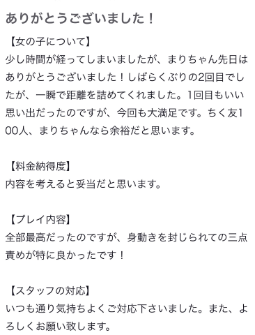 ということで(⁉️)この間もウキウキちくびタイムを一緒に過ごしてくれた仲良しさんが嬉しい口コミを書いてくれたのでお礼の日記です💌