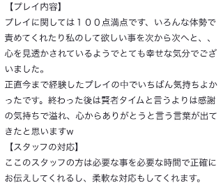 改めて、この間はとっても楽しい時間を一緒に過ごしてくれて、お家に帰ったあとも思い出してお兄さんの大切な時間を使って口コミを書いてくれてありがとう😻‼️読み返してにやにやしちゃお〜っと😝 またあえる日までお互い元気もりもりうきうきちくびでいようね‼️