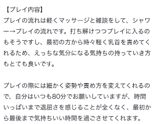 お兄さんこの体勢のときこんな反応してたからきっとこれ好きだろうな❗️とか意外と覚えてたりして、今日はこっちやってみよう🎶前回これ好きそうだったから今回はもうちょっと長めにやってみようかなあとか色々考えながらお部屋まで向かってるから、「こちらの過去の反応などもおそらく踏まえて色々としてくれるため、ホニャララ〜」と書いてくれててびっくりした‼️すごい細かいところまで汲み取ってくれている(;-; )まさにちくびで通じ合ってしまった❣️
