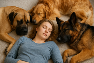 大型犬3匹ぐらいに囲まれて