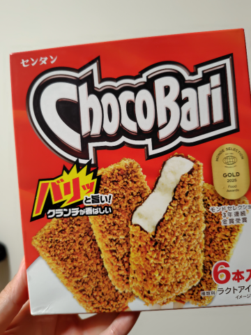 chocoBariっていうアイスがあるんだけど、ザクザクしてておいしい😋
