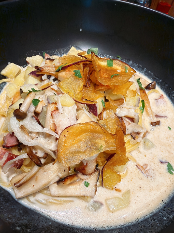 さつまいもときのこがたっぷり入ったクリームパスタ美味しかったです💕