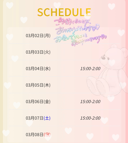 ♡ネット予約は出勤日の前日営業日まで·͜· ꕤ︎︎️🩵