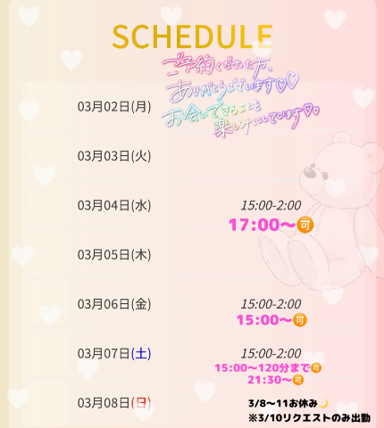 予定などで少し少なめなんですけど