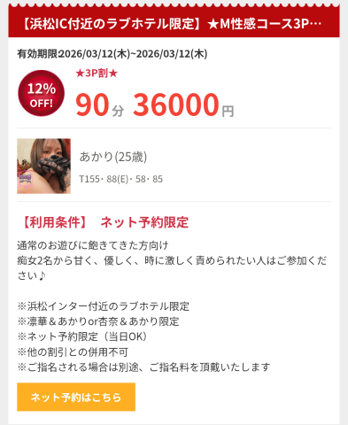 ご予約・お問い合わせ浜松店 10:00~翌2:00(最終受付0:00)
