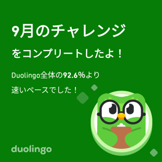昨日、Duolingoの9月チャレンジをコンプリートしました