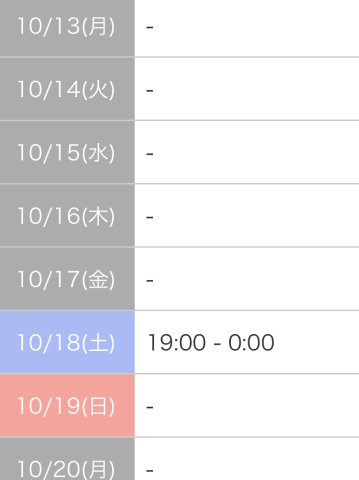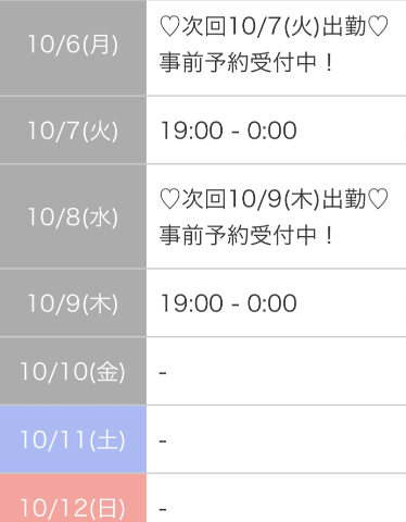 10月暫定シフト!