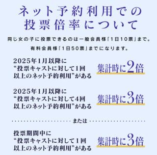期間中1人の女の子にトータル50票投票できるみたいです☺️
