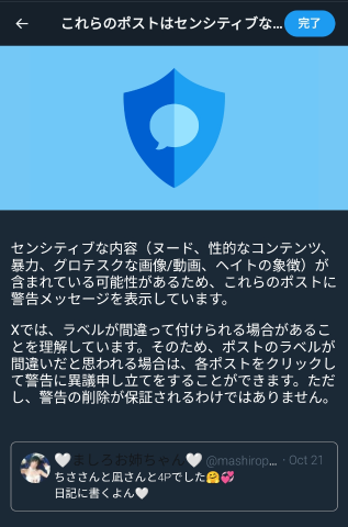 Twitterの方はテキストの方でも警告が出るので、風俗の営業アカウントっぽく見えないように試行錯誤してます🥺