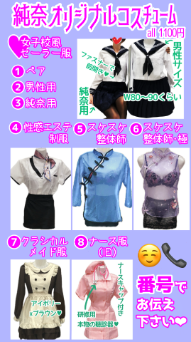 ここにないものはお店の汎用コスプレ衣装にあるかもしれないので、