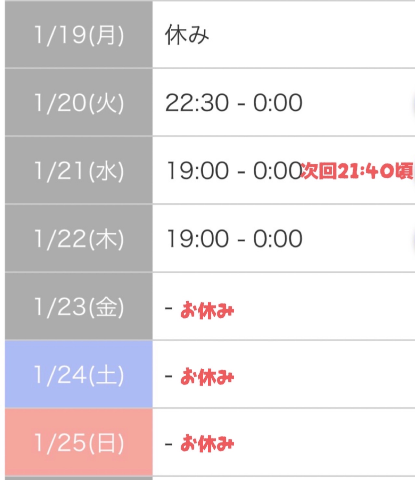 来週以降の暫定シフト🤍