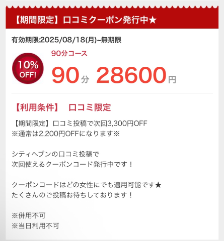 ご利用時10パーセントOFFになる︎って