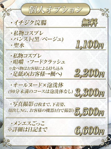 楓さんオリジナルオプションの「メンエスごっこ」を選択させていただきました。