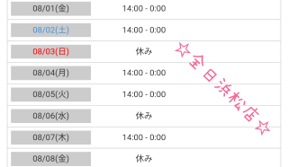浜松店 12時-翌2時(0時受付)
