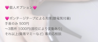 オプション料金ってなってるけど材料費(テープ代)なので、部位によっては追加料金頂くこともあるから、手首以外の箇所はご相談に来てくれると助かります♡