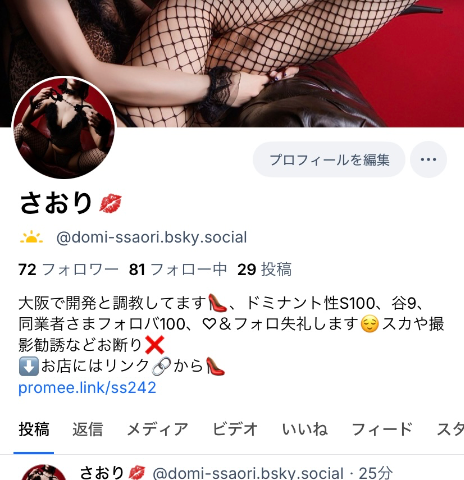 いまXがDMでプレイや予約のやり取りすると凍結すぐするので、新しくブルースカイ🦋のアカウント作ってます✌️