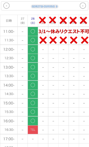 ⬇️2月いっぱいの出勤&残りの空き状況⬇️