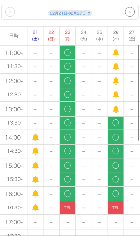 先の日程も予約画面の日付け右横にある○ポチ押して翌週予定のページにいけるので、