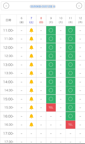 日付け右の〇ポチ押せば翌週画面に移動します❤️