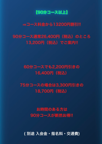 以降のコース時間の料金&詳しくはお店にTELお願いします。